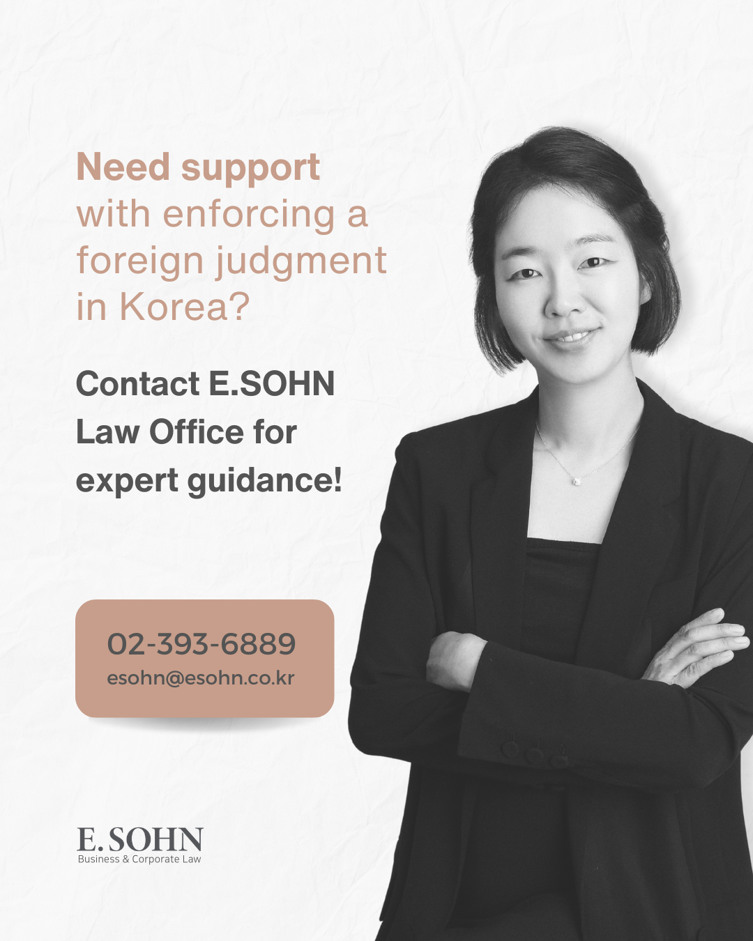 E.SOHN has extensive experience providing advisory and litigation services for foreign individuals and corporations. If you have further questions regarding the domestic enforceability of foreign judgments, please feel free to contact us using the details below.