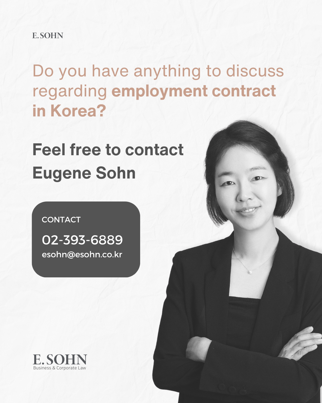 If you have anything to discuss regarding employment contract in Korea, feel free to contact Eugene Sohn via contact below.